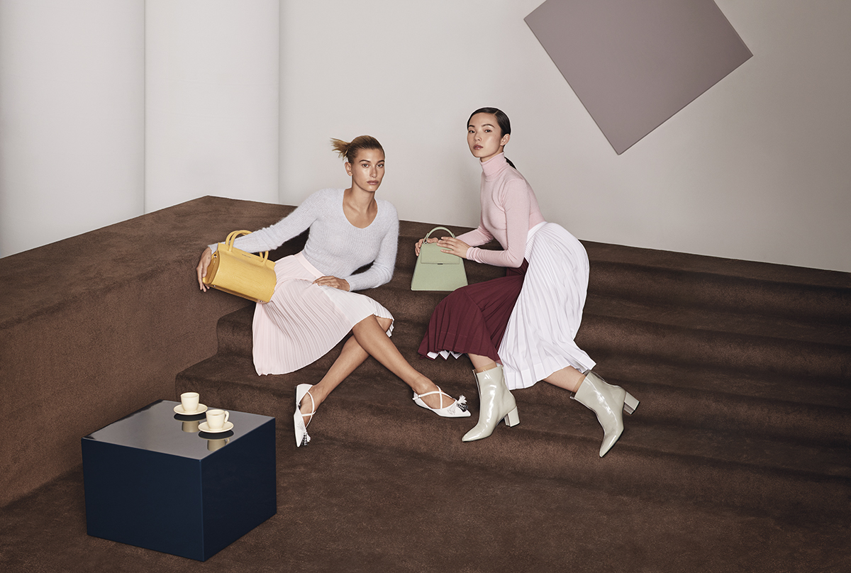The campaign photoshoot features a minimalist set that features clean lines and soft earthy tones. The elegant simplicity of the set is mirrored in the sleek classic cuts of the models’ clothes. Against this backdrop, the collection’s fashion-forward collection of shoes, bags and jewellery take centre-stage.