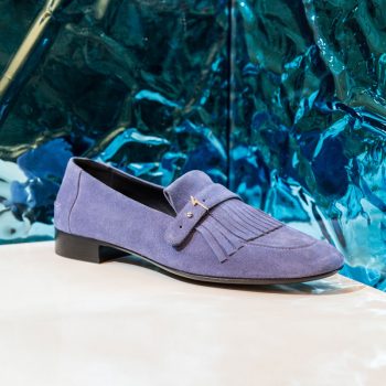In an exclusive new take on the loafer and slip-on, the all-new city loafer blends traditional English style with a contemporary urban look. Soft calfskins, light-weight satin and unlined suedes are tinted with inky blue, black and hazelnut hues. The metal detailing includes gold and steel accents on the classic Gold Panther style, new logo buckles and a cleverly veiled reference to the designer’s initial.