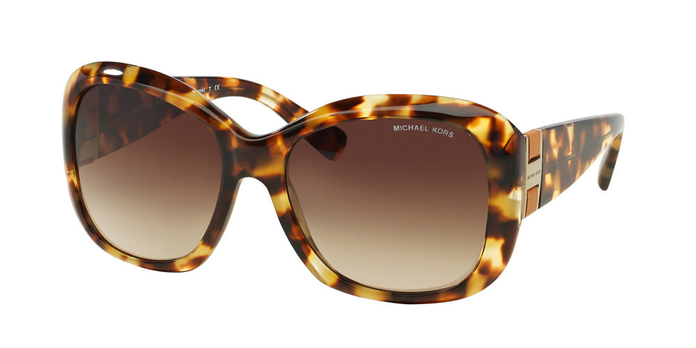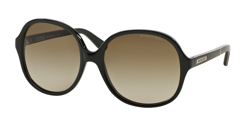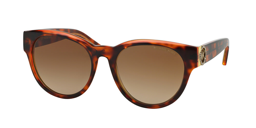 MK2002 – The ultimate in sporty chic, these sunglasses boast a two-tone cat-eye metal frame with a soft touch finish and laser-engraved logo at the temple. The color selection includes a soft touch front and shiny temple combination in black, dark tortoise and oak.